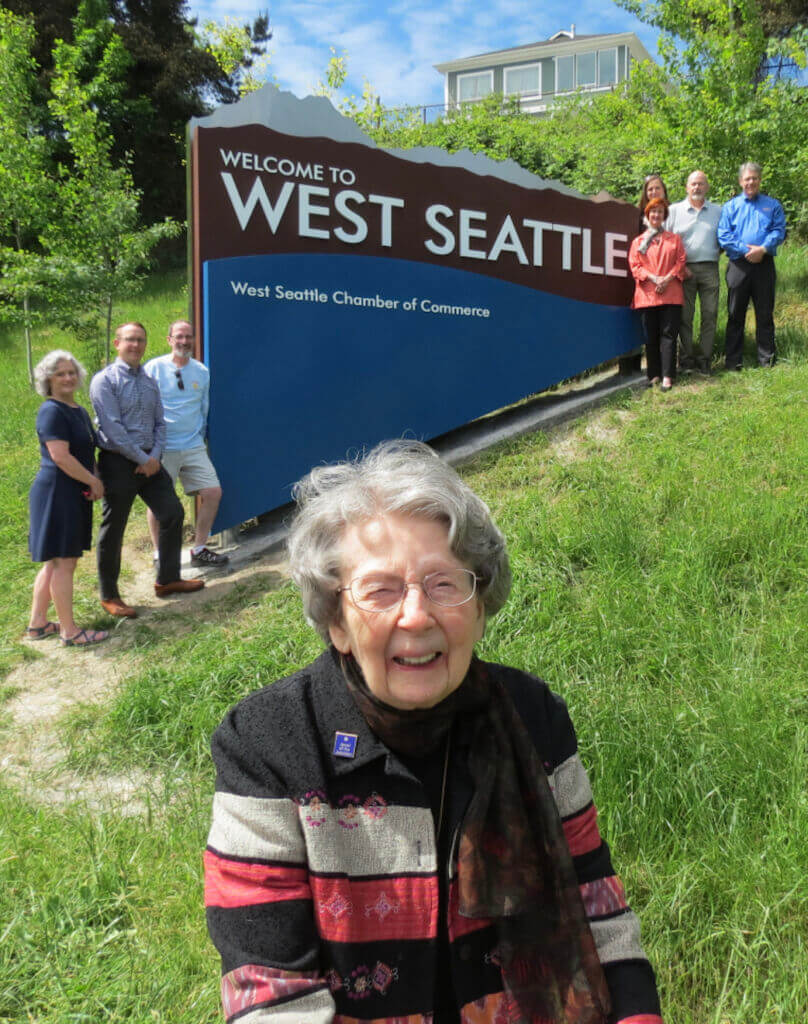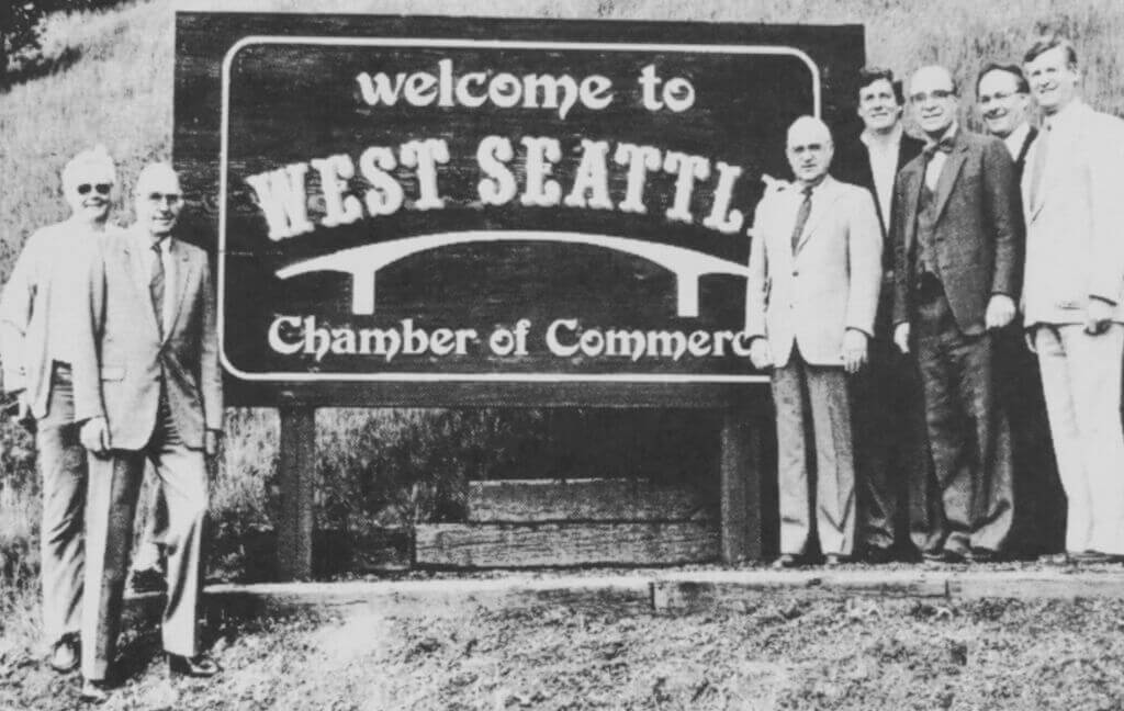 Installed in 1996, the Welcome to West Seattle sign is a signature landmark along the Fauntleroy Expressway. It was the vision of West Seattle community advocate Earl Cruzen, created in partnership with the West Seattle Chamber of Commerce.